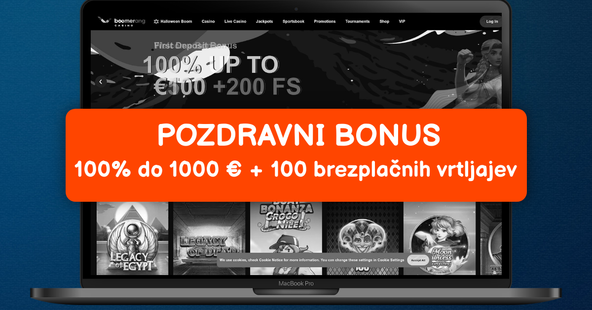 Boomerang Casino ponúka novým hráčom atraktívny uvítací balíček, ktorý je rozdelený na viaceré časti. Hlavným lákadlom je 100% bonus na prvý vklad až do výšky 500 eur plus 200 free spinov na vybrané automatové hry.